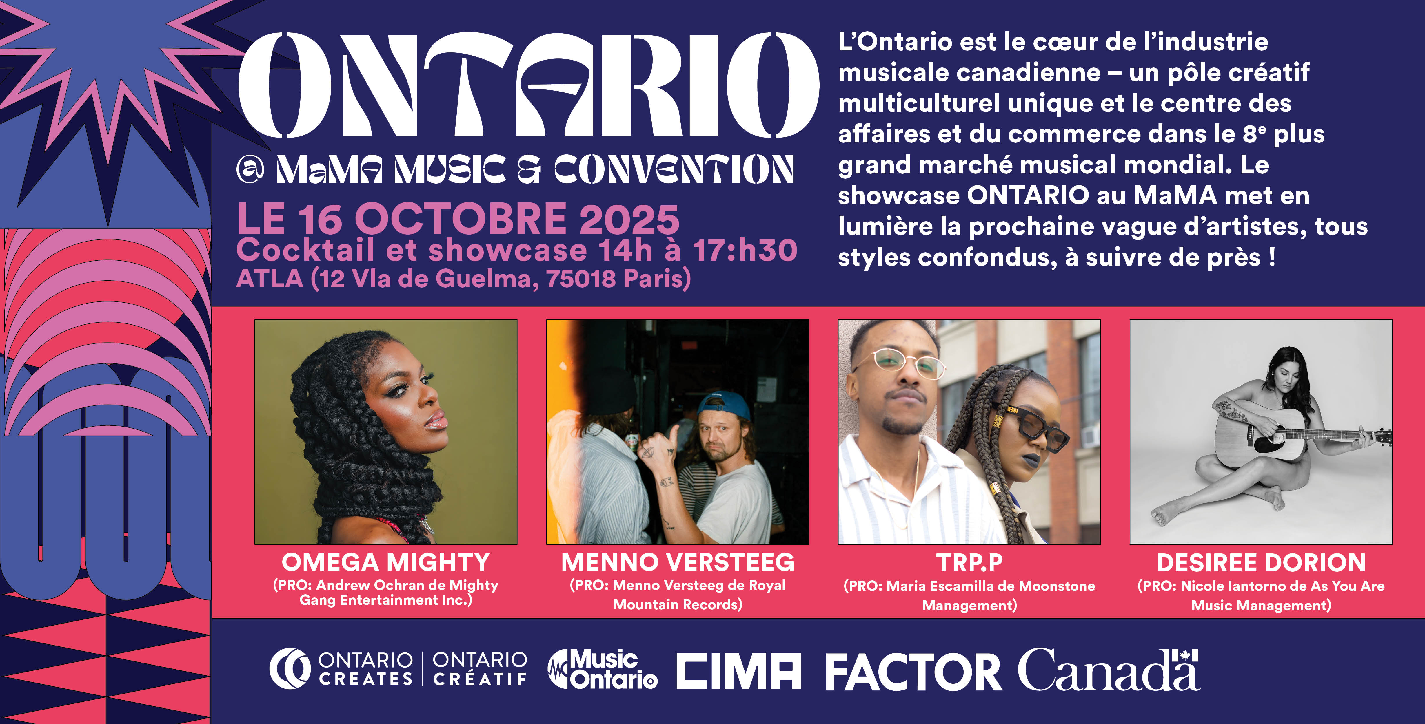 MusicOntario and Ontario Creates are returning to MaMA Music & Convention in Paris for the 4 th year to host a delegation of Ontario artists and music companies! In 2025, we will be presenting an Ontario reception and showcase, as well as organizing supporting business activities at the Canadian Embassy in Paris with targeted French music professionals.