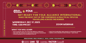 This webinar is designed to help artists and music professionals prepare for Folk Alliance International (FAI). Whether you're attending for the first time or returning with new goals, this session will offer insider guidance, practical travel information, and space for community conversation.